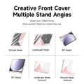 Ultra-delgada: El exterior delgado, ligero y suave al tacto está hecho de cuero de primera calidad de la PU, el interior libre de arañazos ofrece una gran protección, y el marco de TPU + parte posterior de PC hace que su tableta sea más estable