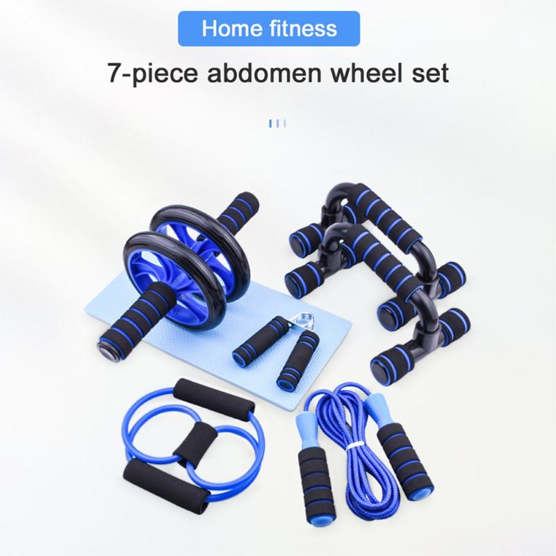 Set de entrenamiento en casa de 7 piezas: rodillo abdominal, barras de flexiones, cuerda de saltar, pinza de mano y expansor de pecho