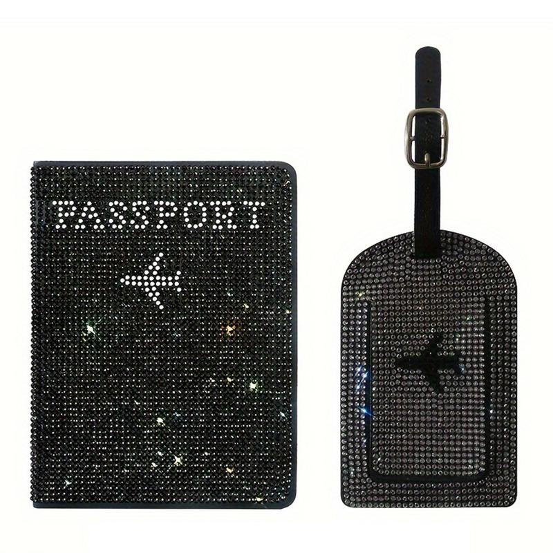 • Set de Porta Pasaportes y Etiqueta de Equipaje de Strass - Organizador de Viaje de Poliuretano Brillante