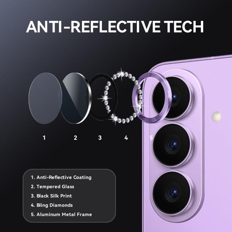 • Set protector de lente de cámara de vidrio templado con diamantes de imitación Northjo para Samsung Galaxy S26