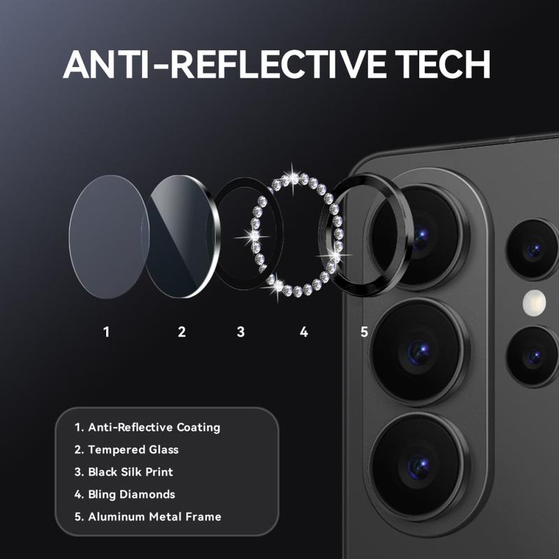 • Set protector de lente de cámara de vidrio templado con diamantes de imitación Northjo para Samsung Galaxy S26 Ultra