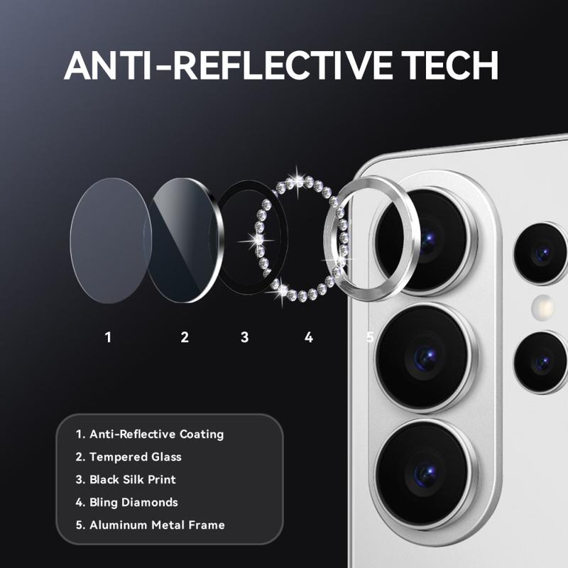Añade brillo y protección a tu Samsung Galaxy S26 Ultra con el protector de lente de cámara NORTHJO. Diseñado con brillantes pedrería y cristal templado cortado con precisión, mantiene la lente de la cámara a salvo de arañazos, polvo e impactos, al tiempo que añade un toque de elegancia y lujo.