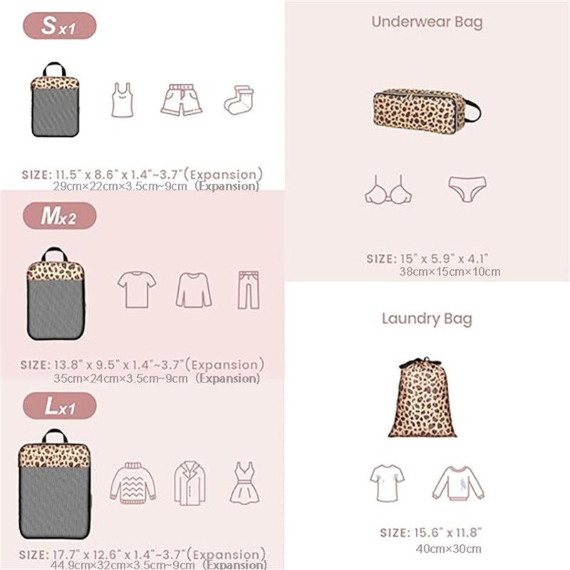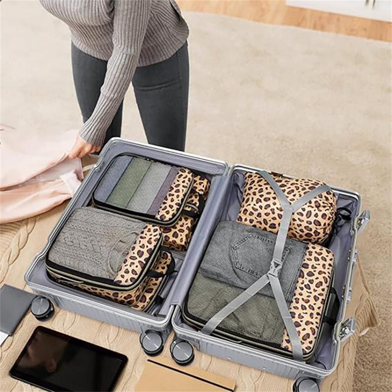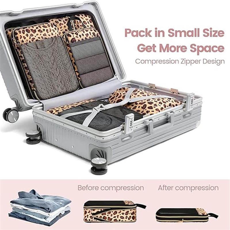 Set organizador de viaje de 6 piezas con estampado de leopardo - Bolsas de compresión para ropa y artículos de aseo que ahorran espacio