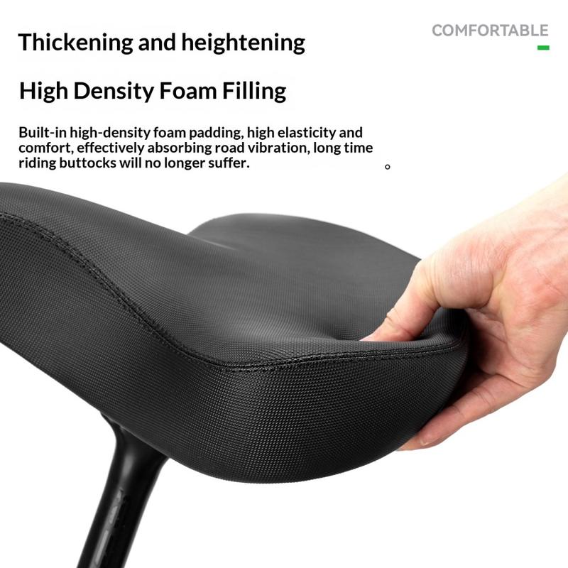 Su diseño de aproximadamente 32 cm de ancho te ofrece una superficie de asiento más amplia, lo que ayuda a distribuir la presión de forma más uniforme y mejora la comodidad en rutas más largas. La espuma acolchada gruesa ayuda a absorber los golpes de las carreteras irregulares y los terrenos más accidentados, lo que la convierte en una mejora práctica para bicicletas de montaña, bicicletas de ocio, bicicletas de turismo y bicicletas eléctricas. Tanto si circulas por la ciudad, por caminos de grava o durante excursiones en bicicleta los fines de semana, este sillín está diseñado para ofrecer una comodidad estable en el día a día.