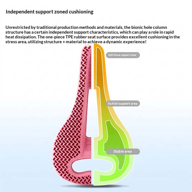 Este sillín es una excelente opción para los ciclistas que buscan mayor comodidad y alivio de la presión durante los recorridos diarios, los entrenamientos o las salidas de fin de semana. La estructura de nido de abeja y el centro hueco ayudan a mejorar el soporte y la transpirabilidad, mientras que su diseño ligero mantiene la agilidad de la bicicleta.