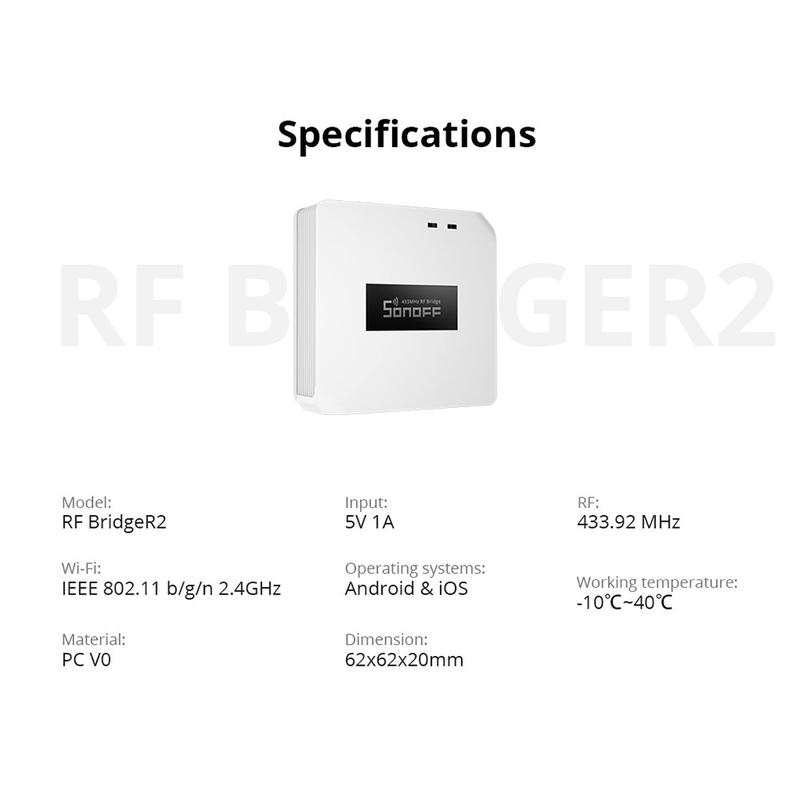 • Sonoff RF BridgeR2 433MHz RF a WiFi Smart Hub - Control eWeLink, 2,4 GHz, seguridad y automatización del hogar