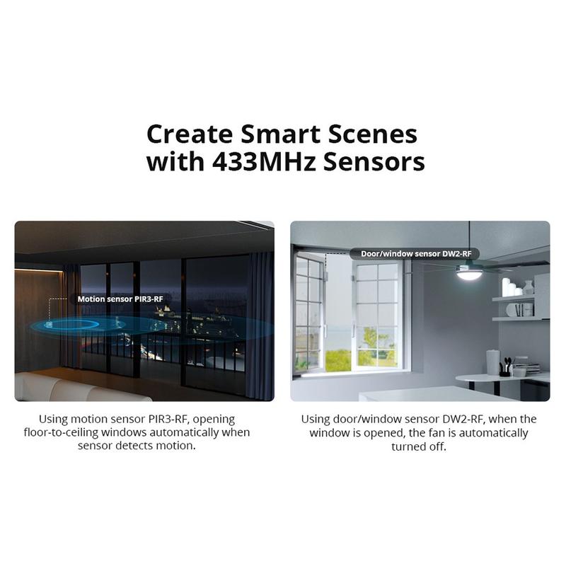 - Puede añadir hasta 64 dispositivos Sonoff RF de 433MHz para ampliar la cobertura del hogar inteligente