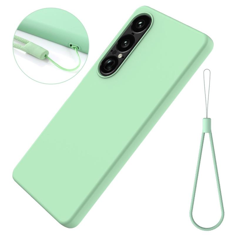 Sony Xperia 1 VII Funda de silicona líquida con correa de mano - Verde