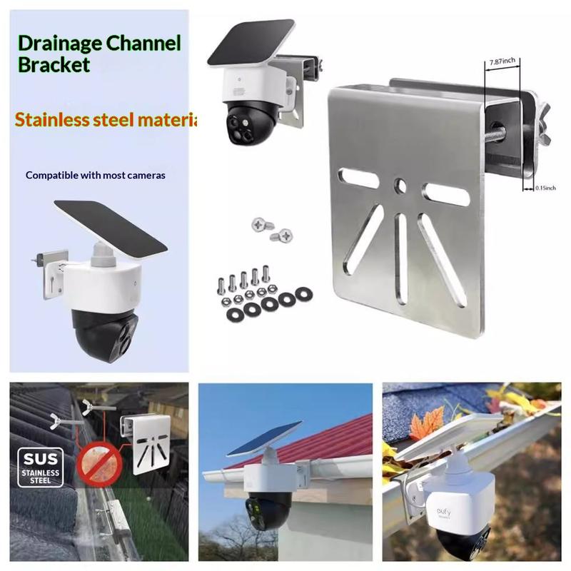 El soporte se puede instalar en canalones, vallas, tejados y estructuras similares, ofreciendo opciones de colocación flexibles para configuraciones de vigilancia residenciales, comerciales e industriales.
