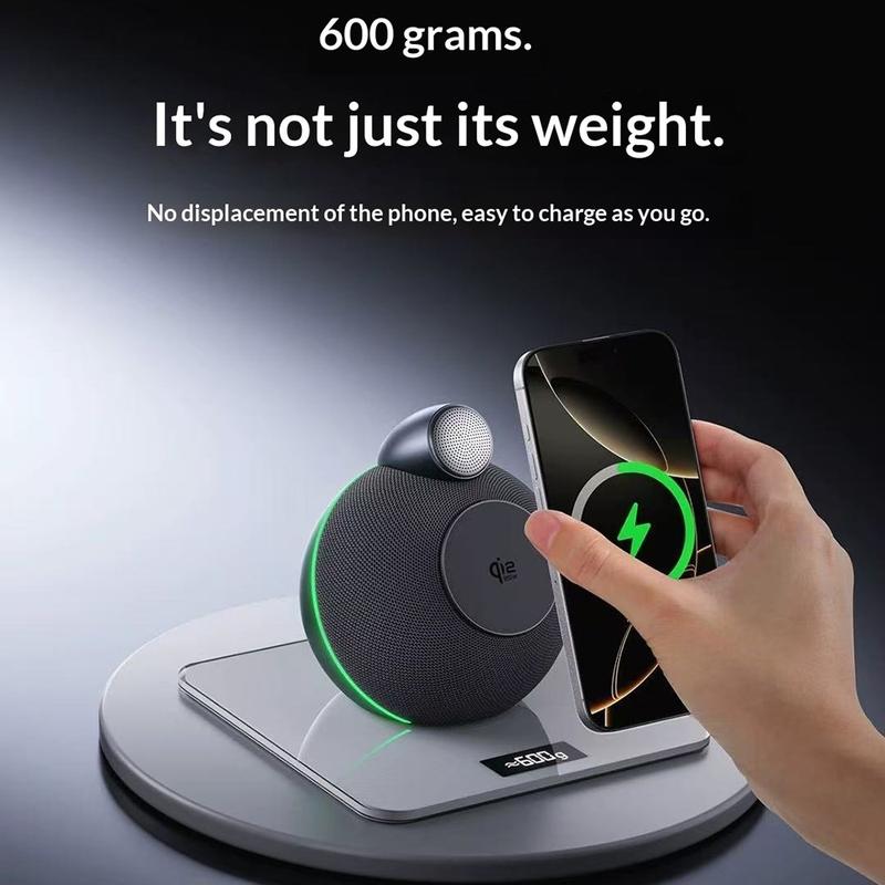 • Soporte de carga inalámbrica X16 Qi 2.2 de 25W con altavoz Bluetooth y luz ambiental: cargador magnético 3 en 1 para teléfono, reloj y auriculares