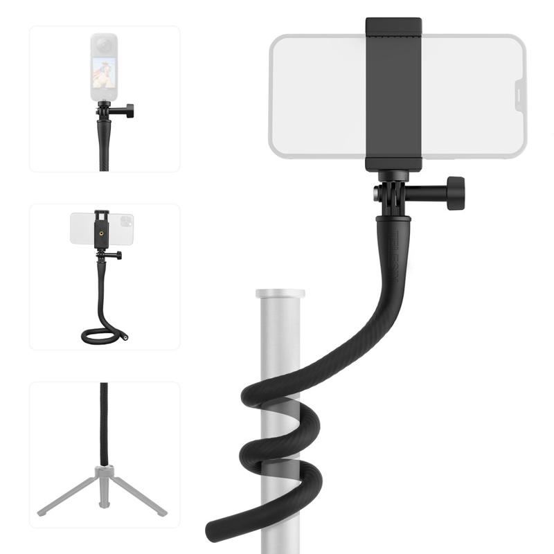 Soporte flexible para grabación Telesin TE-FM-003: soporte para teléfono y cámara de acción, palo selfie para vlogs y trípode