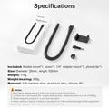 Fabricado en acero inoxidable 316, aluminio, silicona y PC, ofrece una resistencia fiable con una capacidad de carga de 300 g, adecuada para teléfonos y cámaras de acción compactas.
