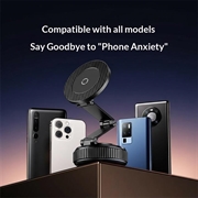 Diseñado para soportar smartphones de 4 a 7 pulgadas, el soporte funciona con los modelos de teléfono más populares. Se incluye una lámina magnética para dispositivos o fundas sin soporte magnético integrado.