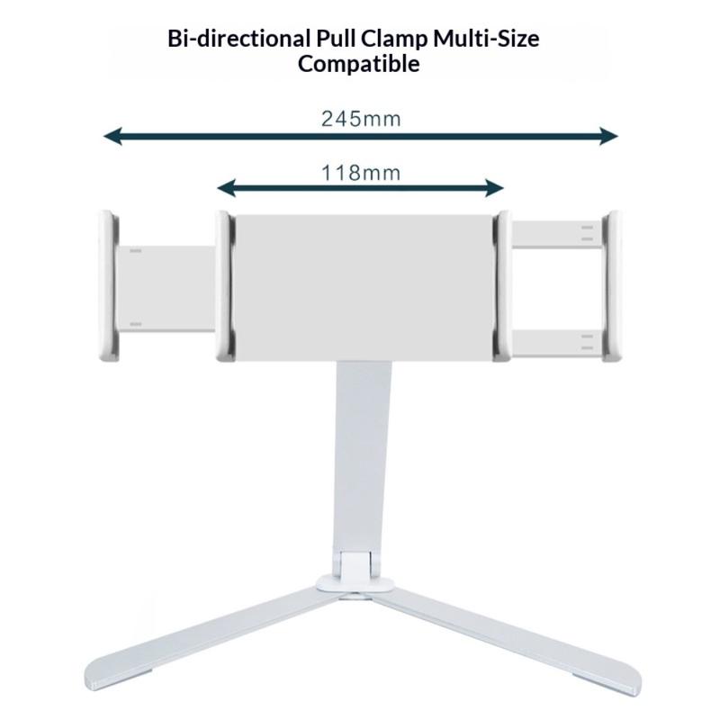 El soporte plegable MT137 está diseñado para soportar dispositivos de 4,0 a 12 pulgadas, gracias a su sistema de sujeción bidireccional. Sujeta con seguridad smartphones y tabletas de varios tamaños, lo que lo convierte en una opción versátil para el uso diario.