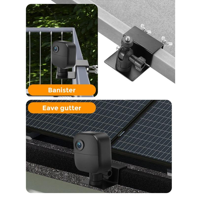 • Soporte universal para barandilla y canalón para cámara de seguridad - Soporte de aluminio de 360° ajustable para movimiento horizontal y vertical con tornillo de 1/4