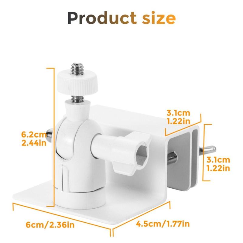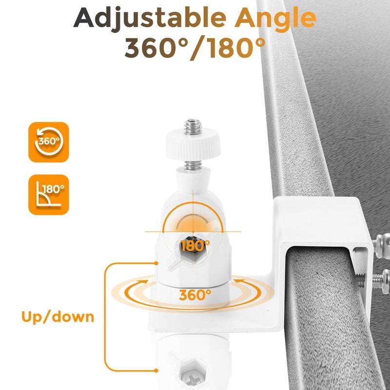 • Soporte universal para barandilla y canalón para cámara de seguridad - Soporte de aluminio de 360° ajustable para movimiento horizontal y vertical con tornillo de 1/4