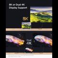 Gracias a la compatibilidad con Thunderbolt 3 y 4, el cable también admite salida de vídeo avanzada-8K (pantalla única) y 4K (pantallas dobles) a través de DisplayPort 2.0. Esto lo hace perfecto para conectar portátiles o estaciones de acoplamiento a monitores de alta resolución.