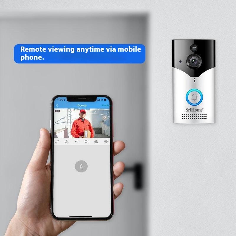 SRIHOME DH002 Video Timbre Inteligente - Cámara WiFi HD 4MP con Visión Nocturna, Detección de Movimiento PIR y Audio Bidireccional