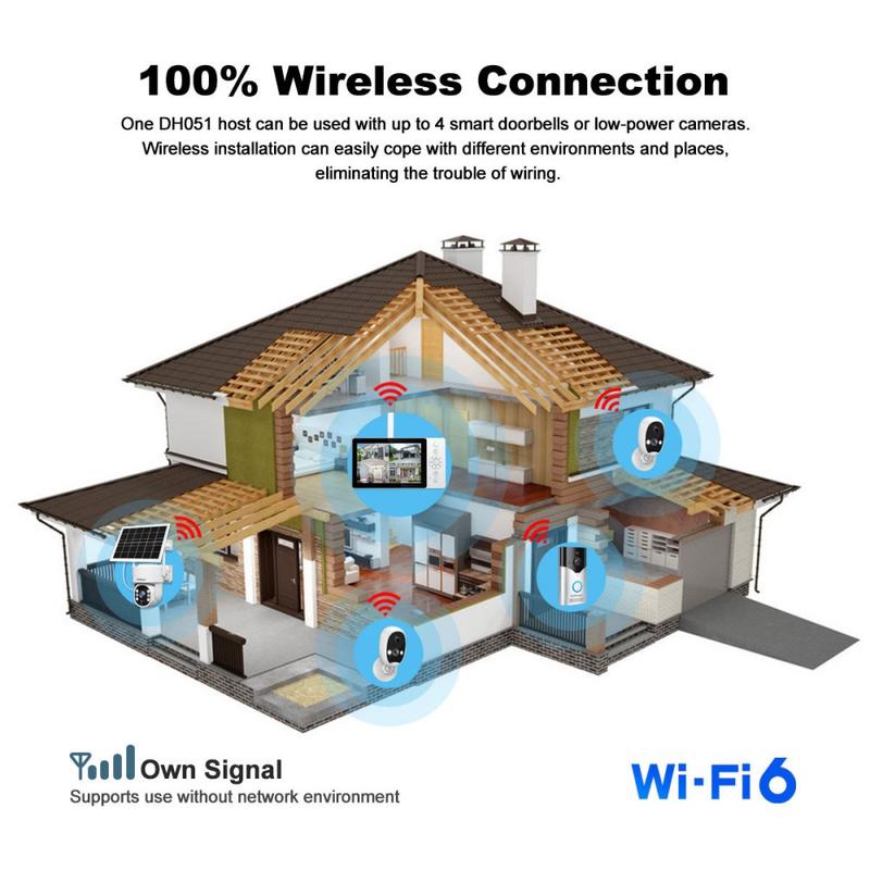 WiFi 6 ofrece velocidades hasta un 40% más rápidas que WiFi 5 a la vez que reduce el consumo de energía, por lo que es ideal para dispositivos domésticos inteligentes como este sistema de timbre. La compresión de vídeo H.264 garantiza una transmisión eficiente con un uso mínimo de datos, mientras que la capacidad de red local proporciona tranquilidad incluso cuando se cae Internet.
