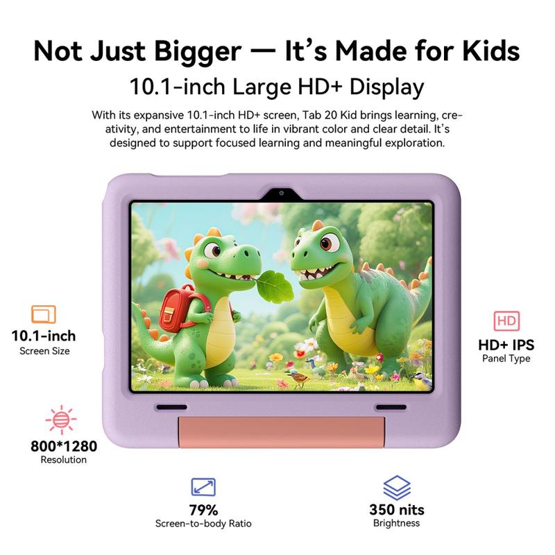 Fabricada específicamente para niños, la Tab 20 Kids ofrece una interfaz sencilla e intuitiva, una gran durabilidad, altavoces de doble caja para disfrutar viendo vídeos y controles a nivel de sistema para ayudar a los padres a gestionar el uso y el contenido.