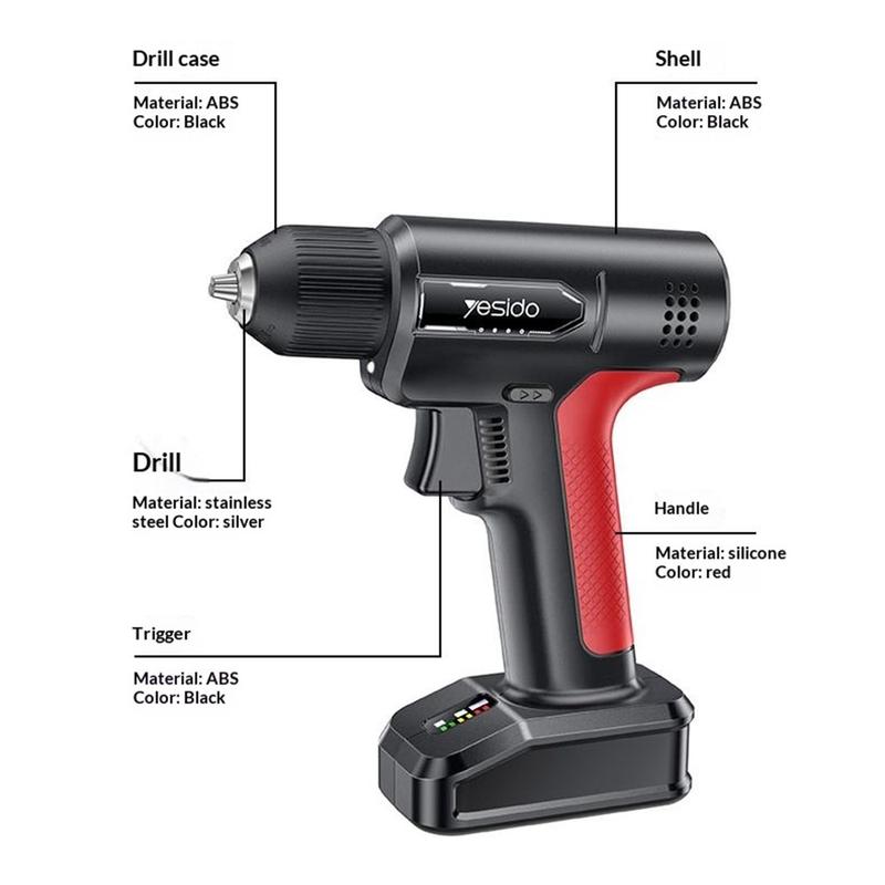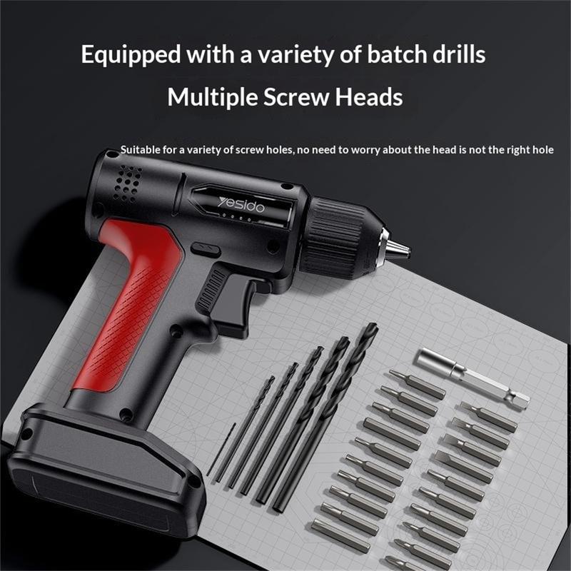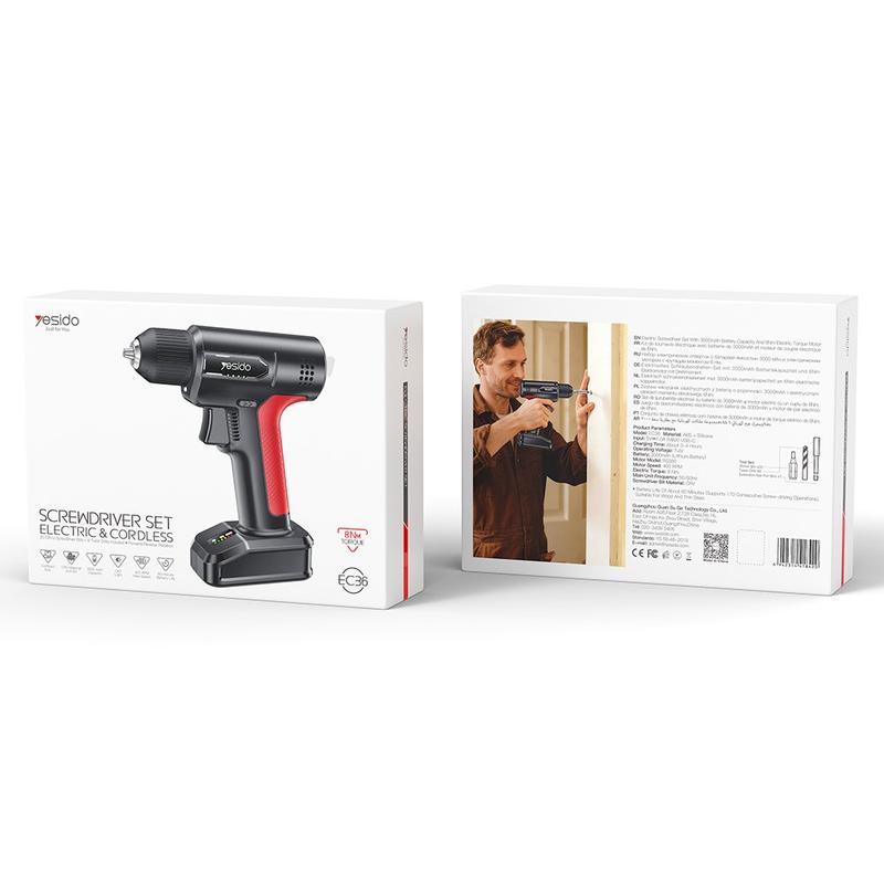 Taladro atornillador eléctrico inalámbrico Yesido EC36 de 3000mAh con un par de 8 Nm, 400 rpm y luz LED