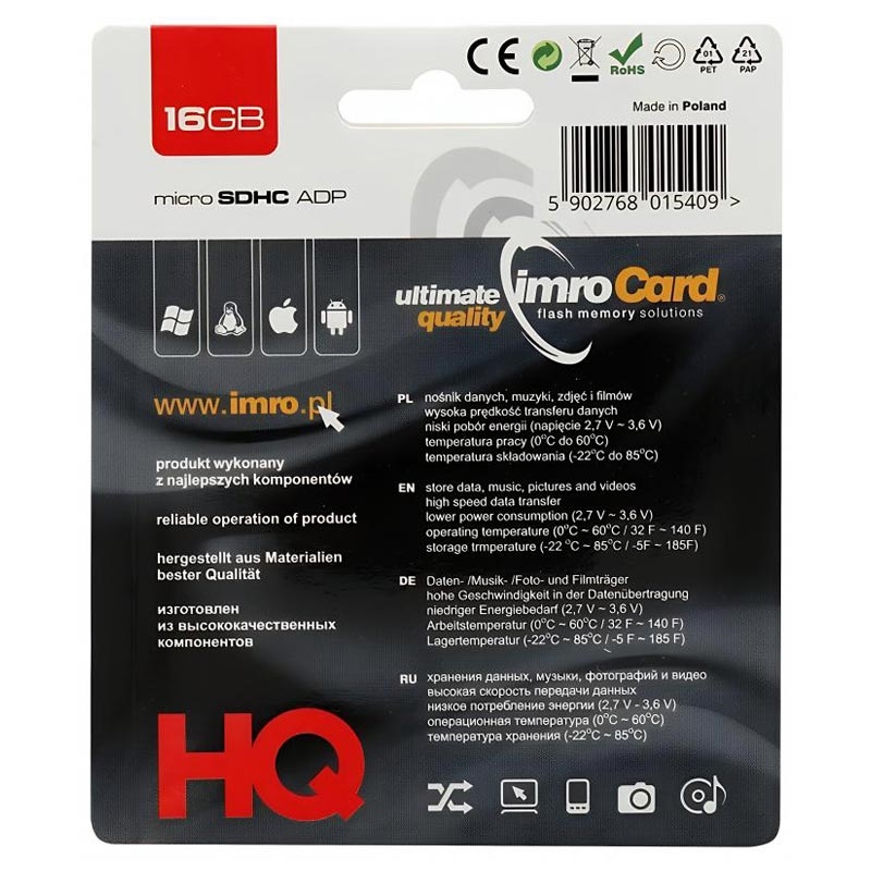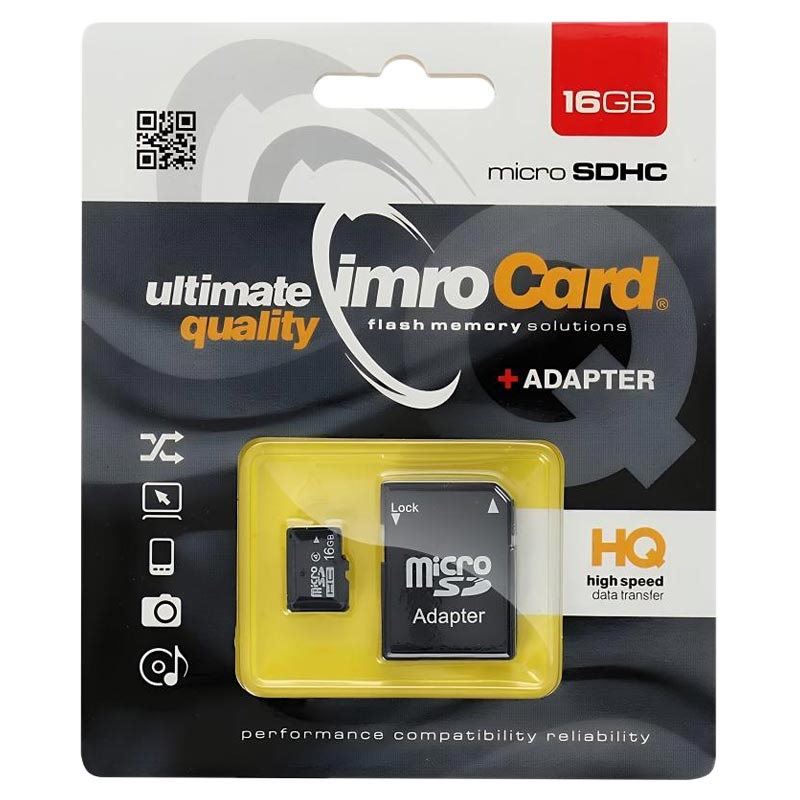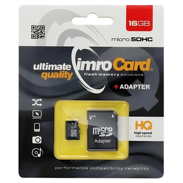 • Tarjeta de memoria microSDHC Imro de 16GB con adaptador SD - Clase 4, hasta 85 MB/s de lectura