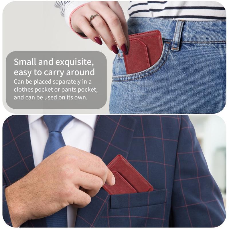 Fabricada en piel sintética de alta calidad, la cartera ofrece un aspecto refinado con un tacto suave y duradero. Su perfil fino y ligero cabe fácilmente en bolsillos o chaquetas y también puede utilizarse como cartera independiente cuando se separa del teléfono.
