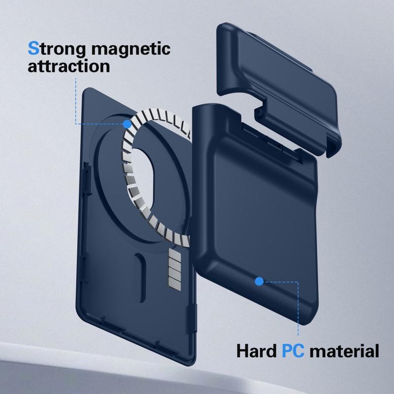 Este tarjetero magnético con pie de apoyo es un accesorio elegante y práctico diseñado para dispositivos de la serie iPhone 12-17. Fabricado con un resistente material de PC duro, se ajusta con seguridad a la parte posterior del teléfono mediante una potente absorción magnética. Mantiene sus tarjetas esenciales a mano, al tiempo que añade comodidad de visualización manos libres, todo en un diseño delgado y fácil de usar a diario.
