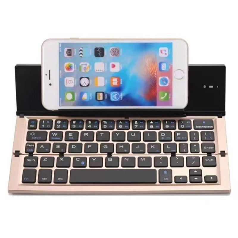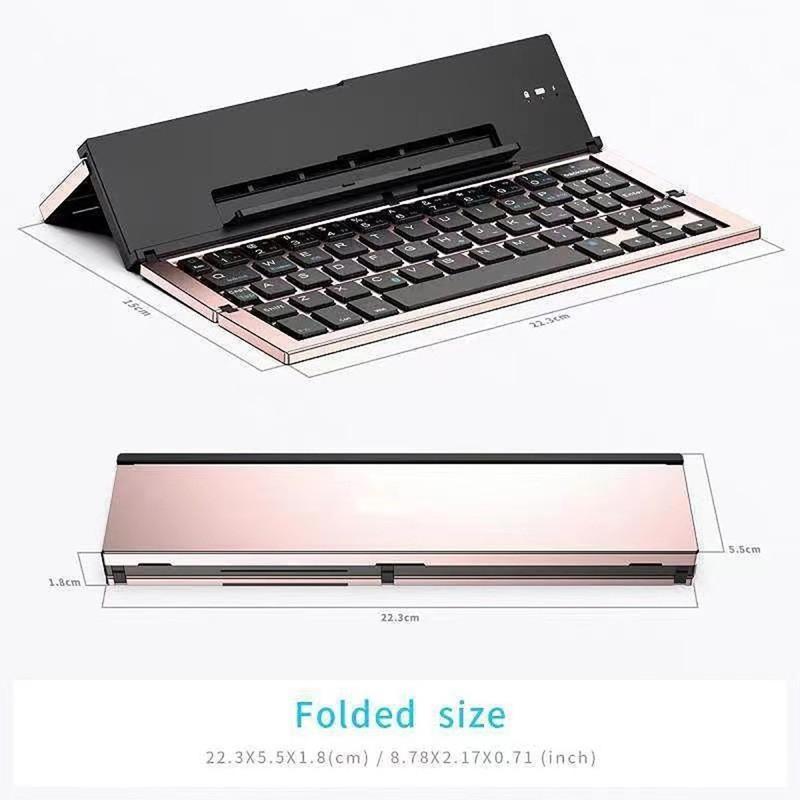 • Teclado inalámbrico plegable 608 con conmutación de doble canal y soporte - Aleación de aluminio