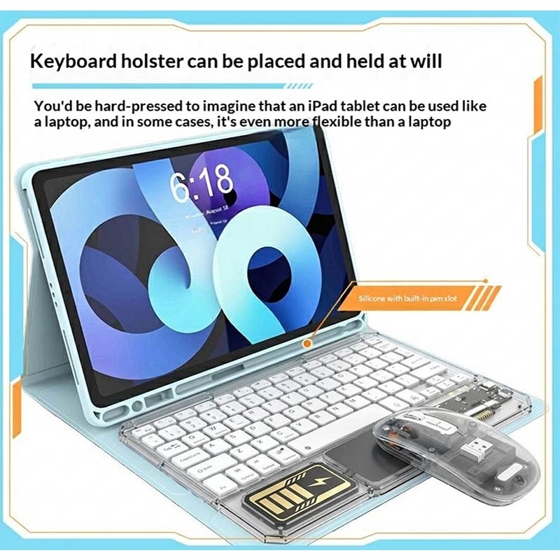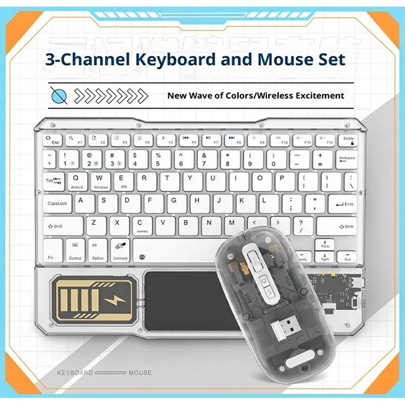 Mejora la configuración de tu escritorio o tableta con el conjunto de teclado y ratón Bluetooth transparentes KB333. Diseñado para el trabajo, el estudio y el uso diario, este combo inalámbrico combina un teclado compacto, un panel táctil integrado y un ratón a juego en una elegante configuración. El diseño transparente con retroiluminación RGB le confiere un aspecto moderno, mientras que la conectividad de 3 canales facilita el cambio entre varios dispositivos.