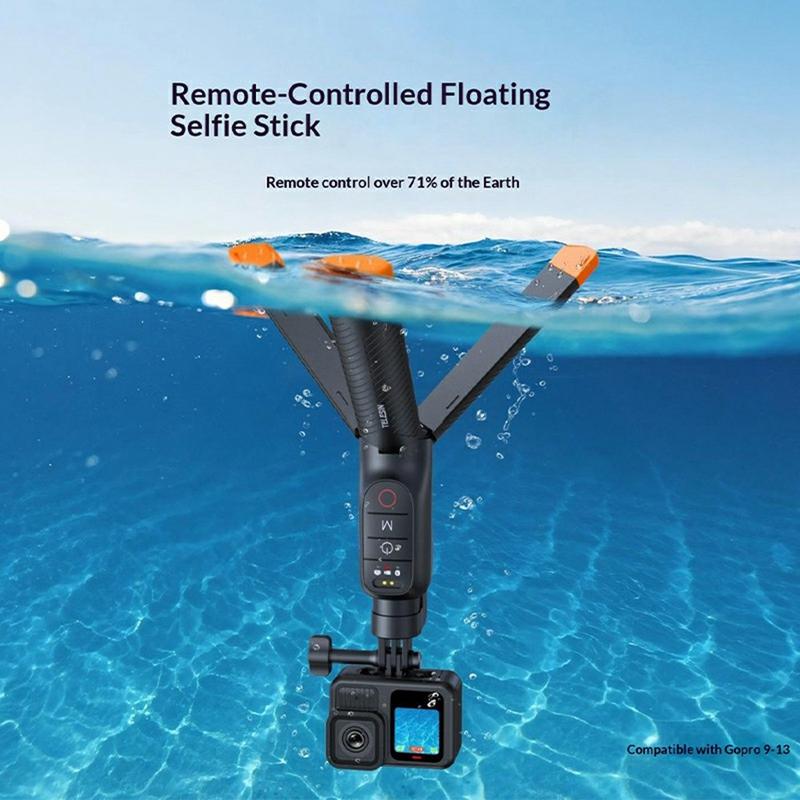 Telesin S1-TSS-07: palo selfie flotante / trípode subacuático extensible con mando a distancia Bluetooth para GoPro Max/Hero13/Hero12/Hero11/Hero10/Hero9