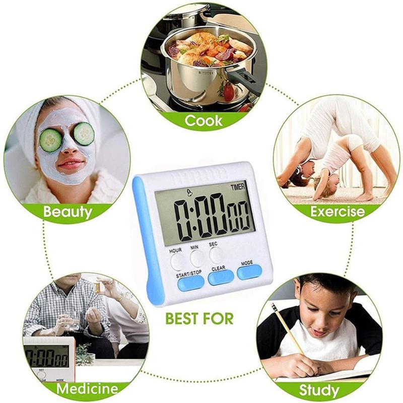• Temporizador de cocina digital magnético con pantalla LCD grande - Temporizador con cuenta atrás de 24 horas, alarma sonora y soporte plegable