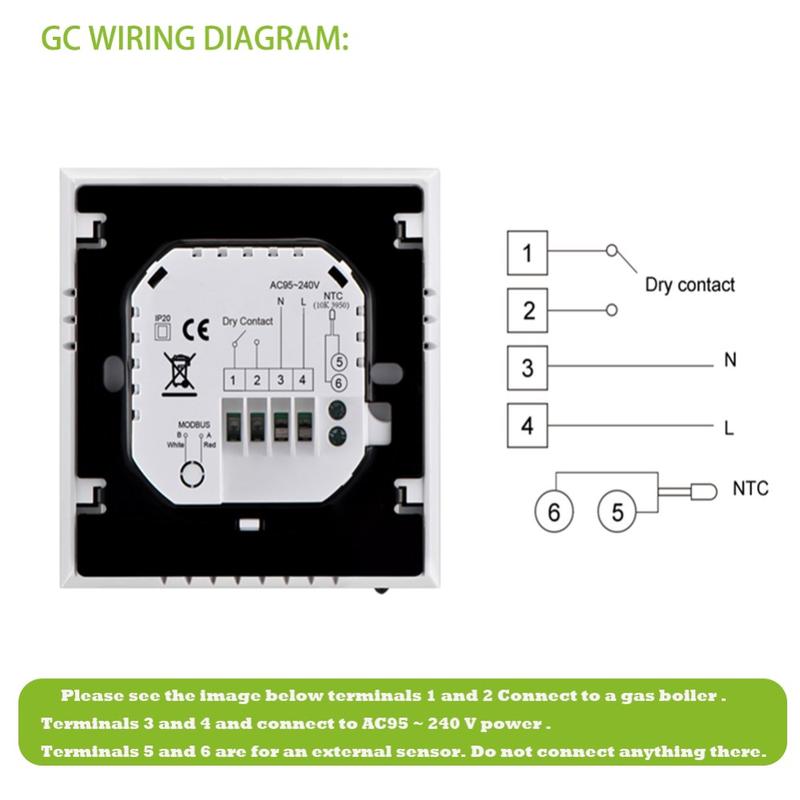 Fabricado con material PC+ABS ignífugo y duradero, este termostato está diseñado para ofrecer un rendimiento a largo plazo y un funcionamiento estable. La protección contra cortes de corriente ayuda a conservar los ajustes guardados, lo que reduce la necesidad de volver a configurar el dispositivo tras las interrupciones. Su formato de instalación empotrada se adapta a una caja de pared estándar de 86 x 86 mm o a una caja europea convencional, lo que lo hace adecuado para una amplia gama de interiores.