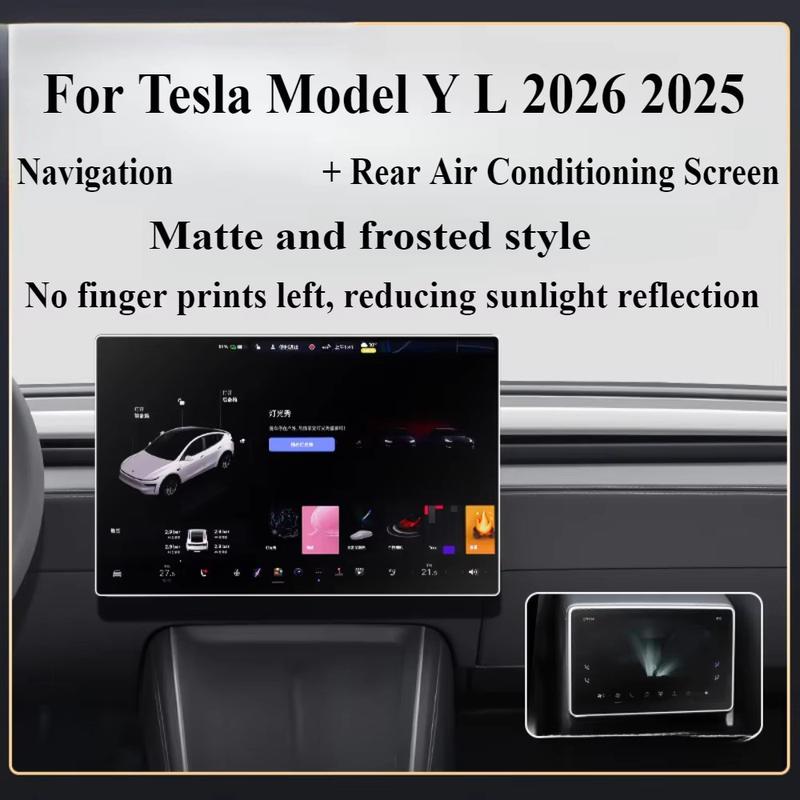 • Pack de 2 protectores de pantalla de cristal templado para Tesla Model Y / Model L (2025-2026): protección antirreflejos para pantallas delantera de 16" y trasera de 8"