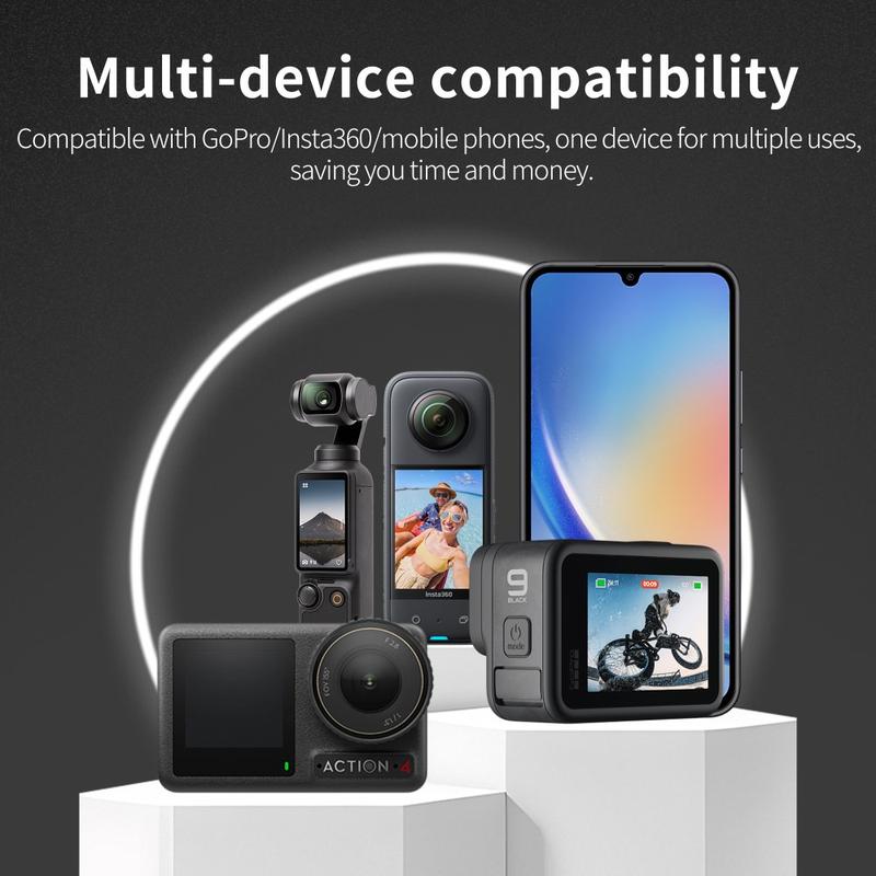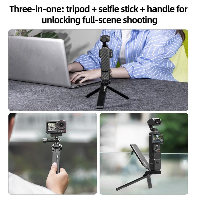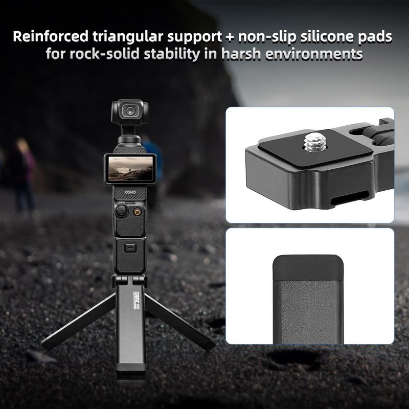Equipado con una rosca estándar de 1/4", el trípode es compatible con una amplia gama de dispositivos, incluyendo la serie DJI Pocket, cámaras de acción, cámaras compactas y accesorios. Se incluye un adaptador GoPro para mayor versatilidad.