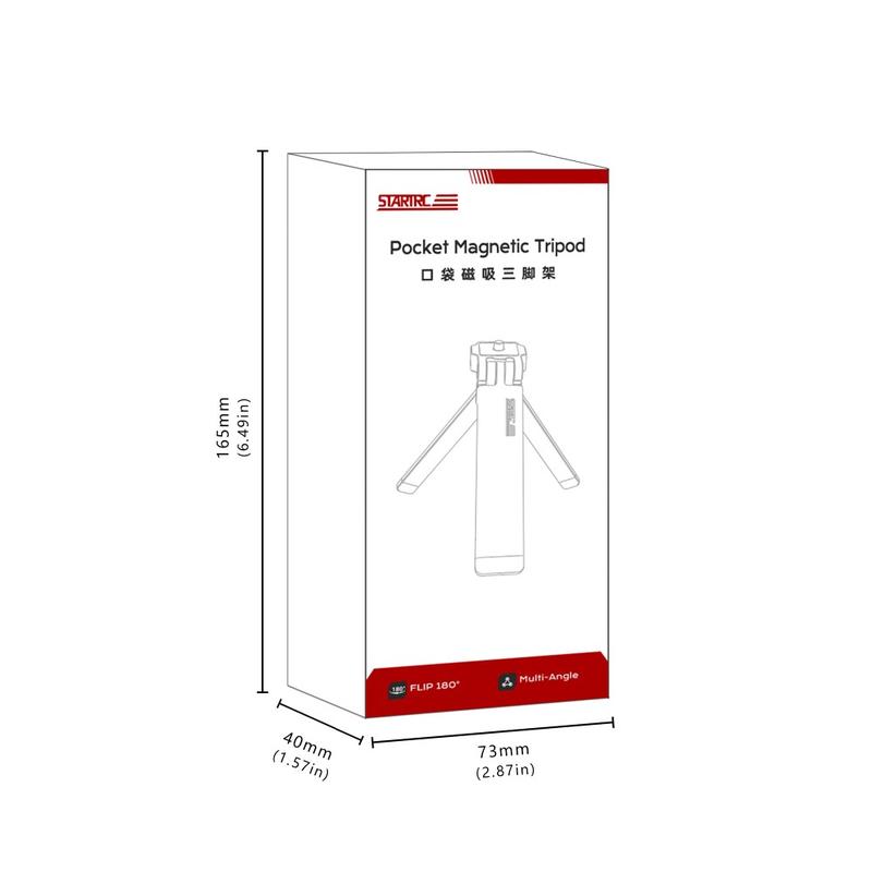 El trípode magnético STARTRC presenta un diseño delgado y plegable que cabe fácilmente en el bolsillo o en el bolso. Cuando está plegado, mide solo 170 x 35,8 x 12,5 mm, lo que lo hace ideal para viajar, realizar sesiones fotográficas al aire libre y llevarlo a diario.
