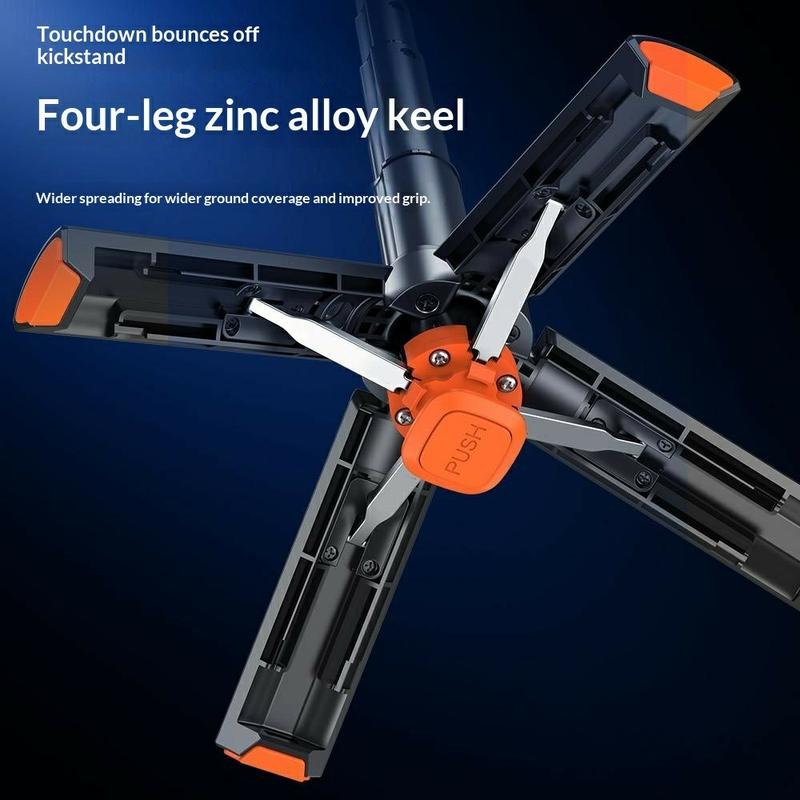 Las patas del trípode, que se abren automáticamente, proporcionan una estabilidad rápida al colocarlo en el suelo, mientras que el diseño extensible y el soporte giratorio para el teléfono facilitan el cambio entre diferentes ángulos y formatos de grabación. El mando a distancia Bluetooth incluido te ayuda a hacer fotos sin usar las manos, y las dos luces de relleno cuadradas añaden brillo adicional para selfies, videollamadas y grabaciones.