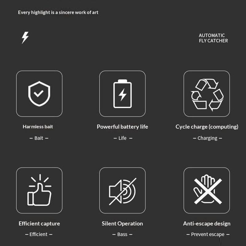 Trampa para moscas giratoria automática recargable por USB para uso en interiores - Negro