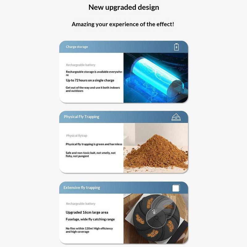 • Trampa para moscas recargable por USB con rotación automática para uso en interiores