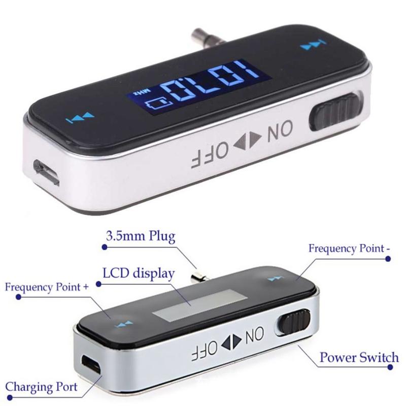 • Transmisor FM inalámbrico universal con AUX de 3.5mm, pantalla LCD