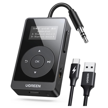 Transmisor y receptor Bluetooth 5.3 2 en 1 Ugreen BT503: aptX Adaptive/HD (TX), pantalla LED, batería de hasta 32 horas, AUX de 3,5 mm, compatibilidad con dos auriculares