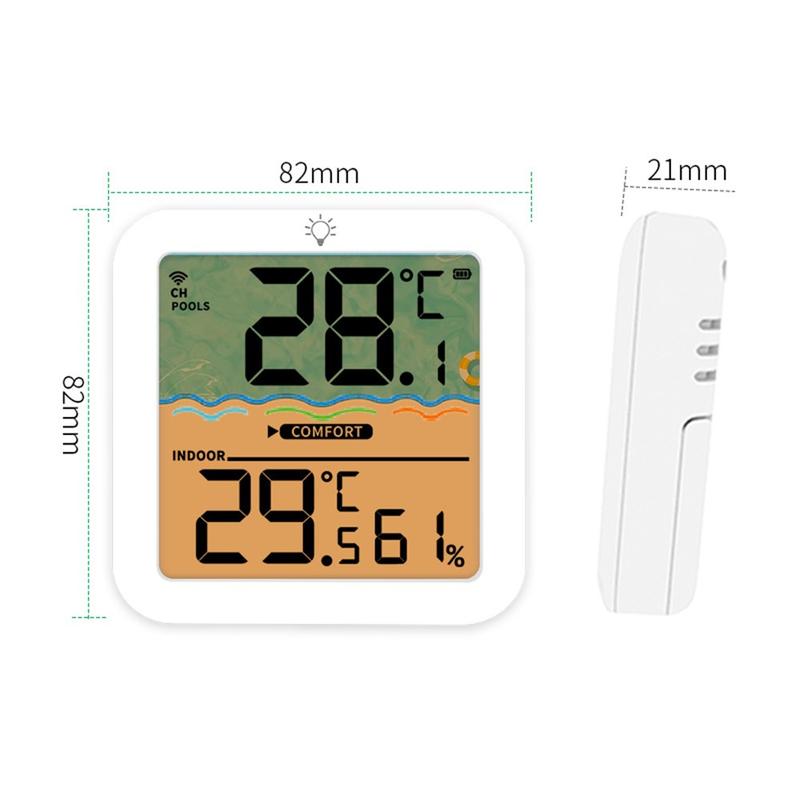 Controle la temperatura de su piscina o spa más fácilmente con el termómetro inalámbrico para piscinas TS-PL07. Diseñado para un uso cómodo tanto en interiores como en exteriores, este termómetro digital flotante cuenta con un transmisor resistente al agua y un receptor independiente para interiores, lo que le permite comprobar la temperatura del agua sin tener que salir al exterior.