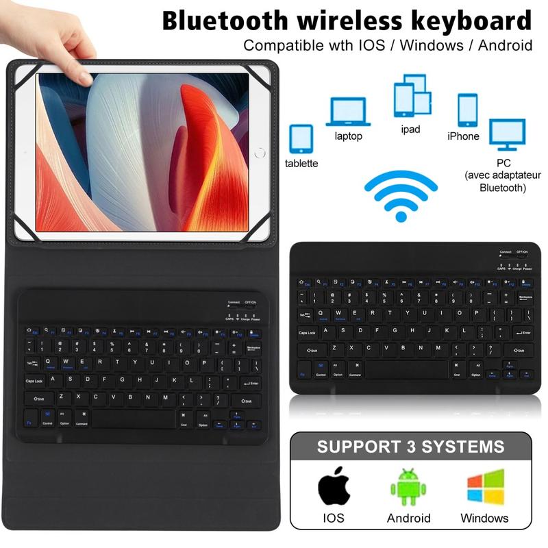 • TY3316 Funda universal para tablet con teclado Bluetooth - 9-11", cubierta de poliuretano con ángulo de visión ajustable, correas elásticas, diseño US