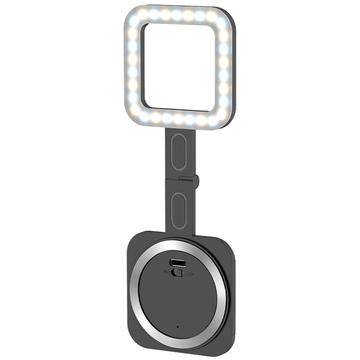 V18 Magnetic Selfie Fill Light: luz LED portátil para vídeo con soporte para teléfono, 3 W, 2500K-9000K, recargable mediante USB-C.