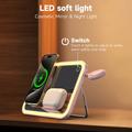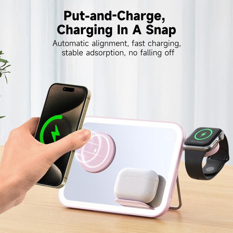 • V22 Cargador inalámbrico 3 en 1 MagSafe con espejo de maquillaje LED, luz nocturna - 10W/5W/3W