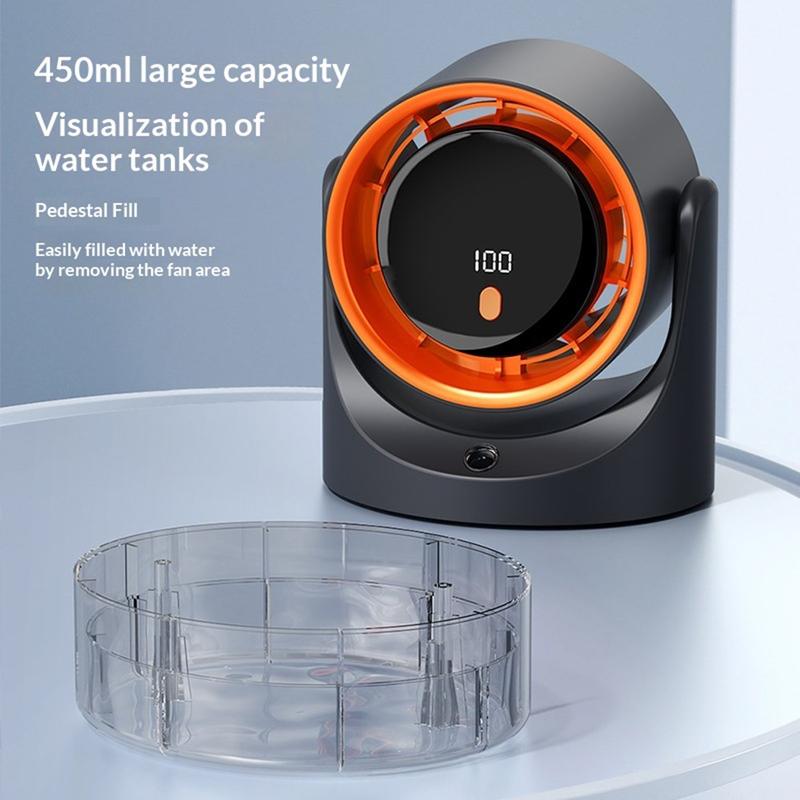 • Ventilador de mesa portátil con nebulizador y conexión USB, con depósito de agua de 450ml: ventilador humidificador de 100 velocidades para la oficina y el hogar