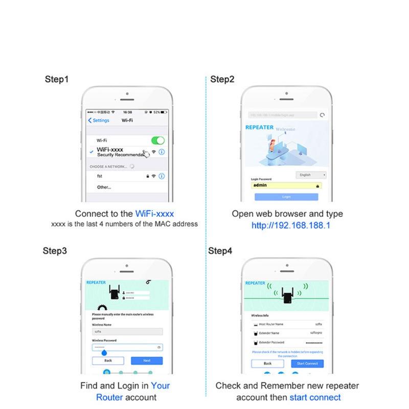 El extensor es fácil de configurar mediante un menú guiado en pantalla disponible en inglés y chino. Es compatible con la mayoría de los routers y admite conexiones para 30 dispositivos o más, incluidos PC, smartphones, tabletas, reproductores multimedia y dispositivos domésticos inteligentes.