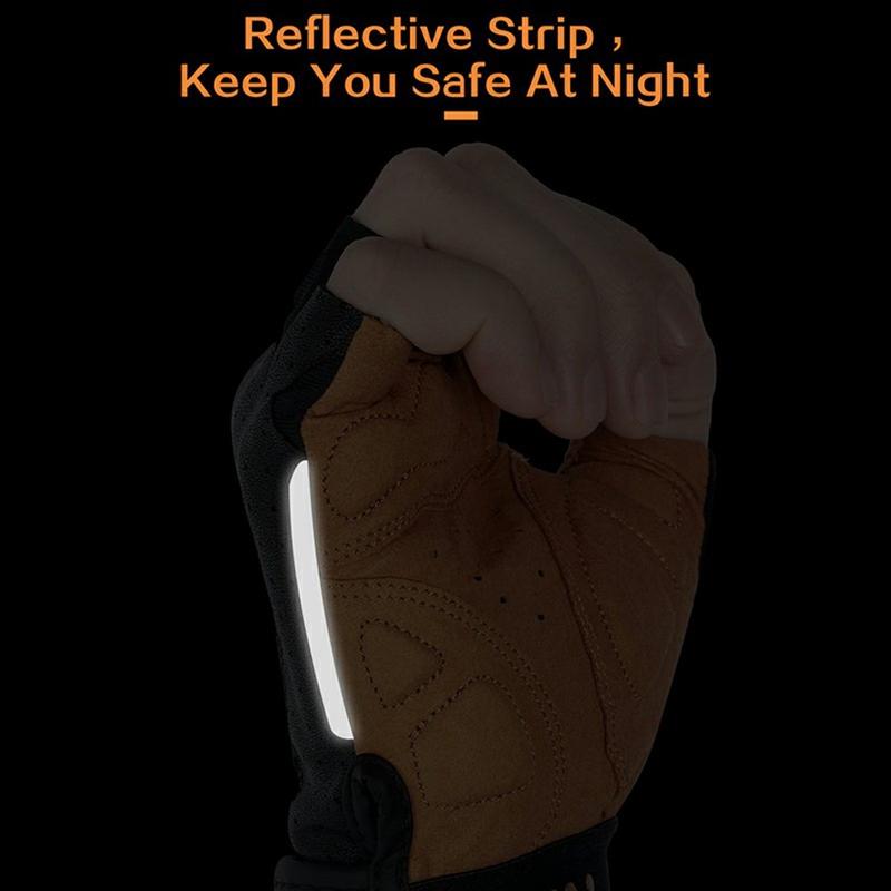 Diseñados pensando en el bienestar y la seguridad del motorista, los guantes incorporan un tejido de rizo que absorbe el sudor para limpiar rápidamente la cara o la frente, junto con elementos reflectantes que aumentan la visibilidad durante las salidas nocturnas. El diseño ergonómico de medio dedo mejora el control, el agarre y la ventilación, ideal para ciclismo de larga distancia, MTB, ciclismo de carretera y desplazamientos diarios.