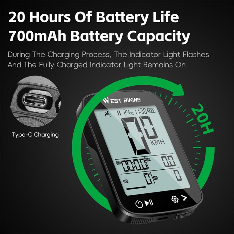 Ciclocomputador GPS West Biking YP0702113: pantalla antirreflejos de 2,4 pulgadas, posicionamiento de 5 sistemas, resistencia al agua IPX7, batería de 20 horas, certificación CE