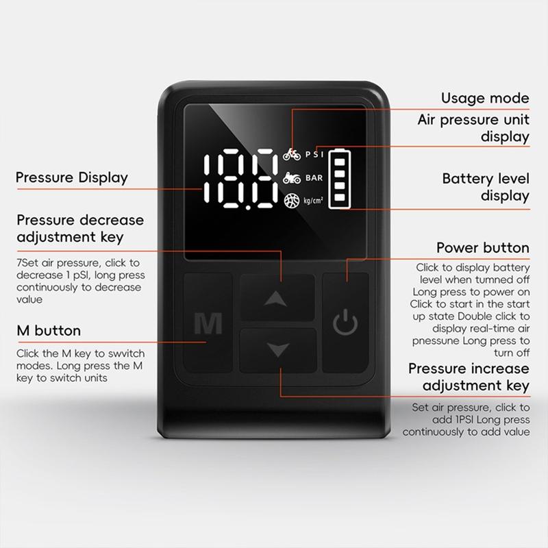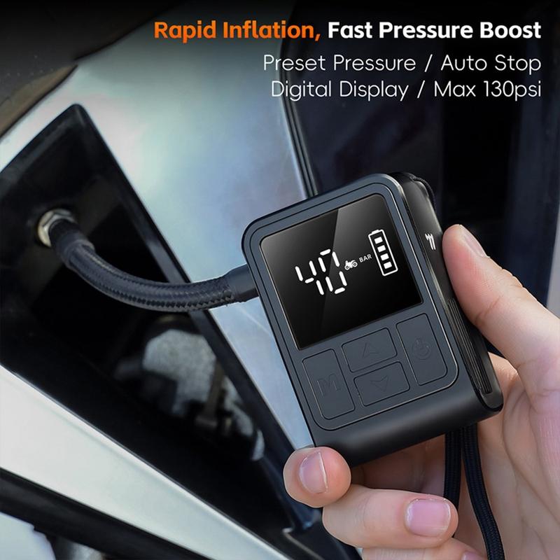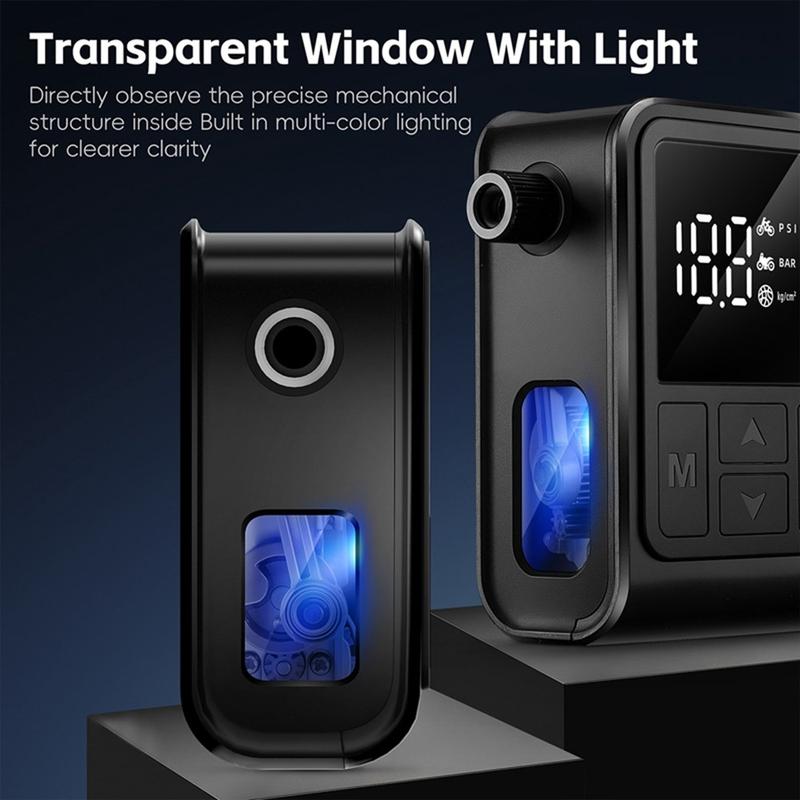 Las bombas eléctricas portátiles como esta utilizan un sistema de pistón motorizado compacto para generar alta presión de aire en un formato pequeño. La pantalla digital y las funciones de apagado automático están inspiradas en los compresores de garaje profesionales, ofreciendo una funcionalidad avanzada en un diseño fácil de transportar.